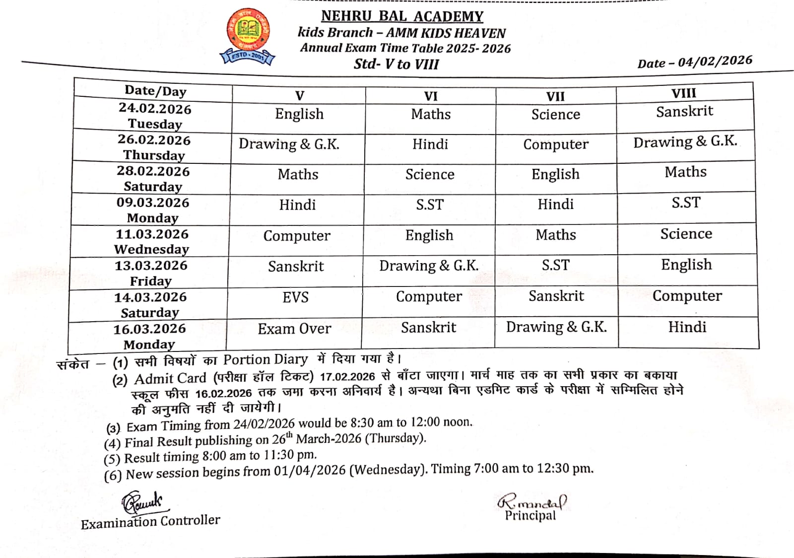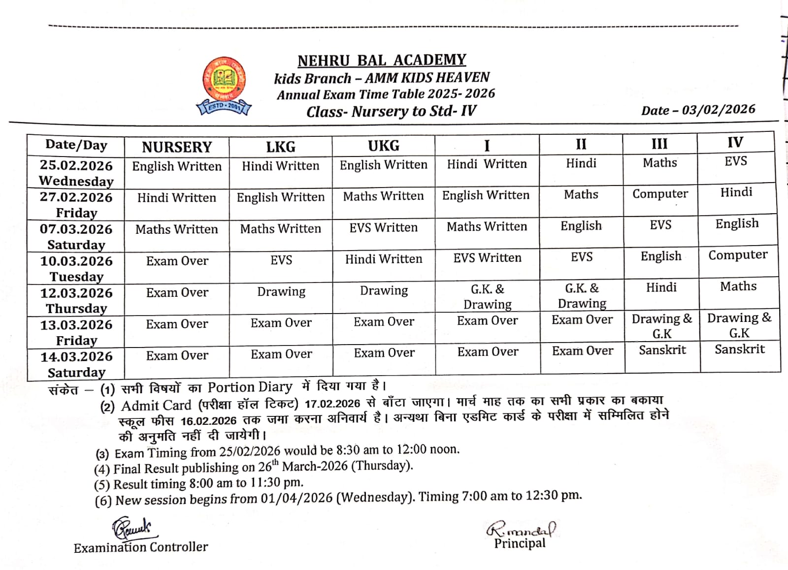 Exam Time Table